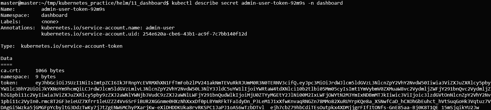 kubectl describe secret admin-user-token-xxxx -n dashboard
