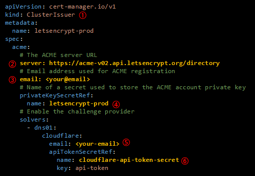 이 문서에서는 네임서버를 사용하여 도메인 소유검증(acme challenge)을 완료합니다. clusterissuer가 생성되면 cert-manager namespace의 secret에 저장됩니다.