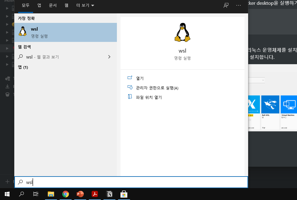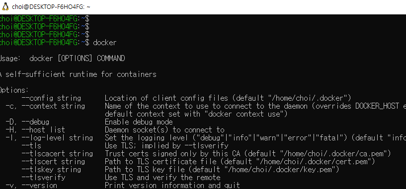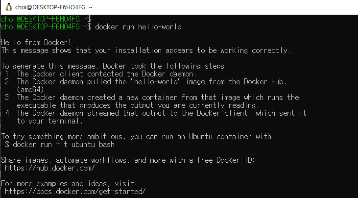 wsl을 실행해서 docker 명령어가 잘 실행되는지 확인해봅시다.