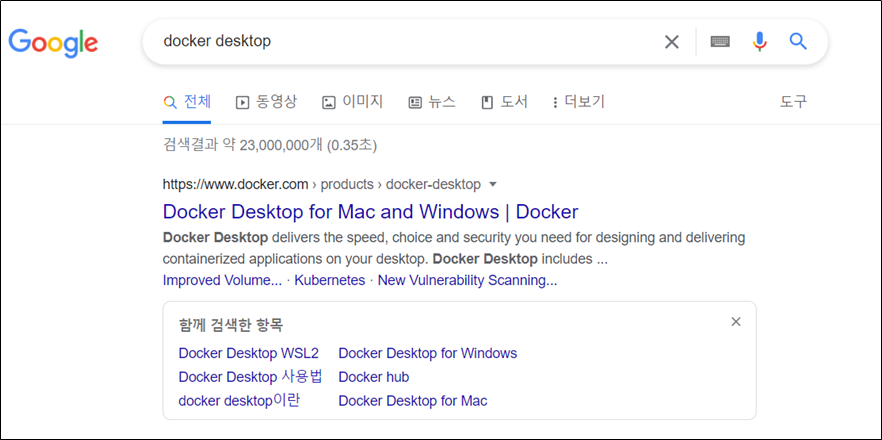 구글에서 docker-desktop을 검색하고 페이지를 클릭합니다.