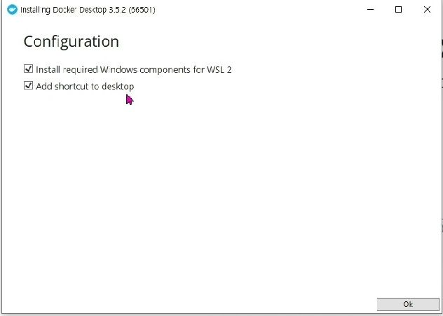 설정을 모두 선택하고 OK버튼을 클릭하면 docker deskto설치가 진행됩니다.