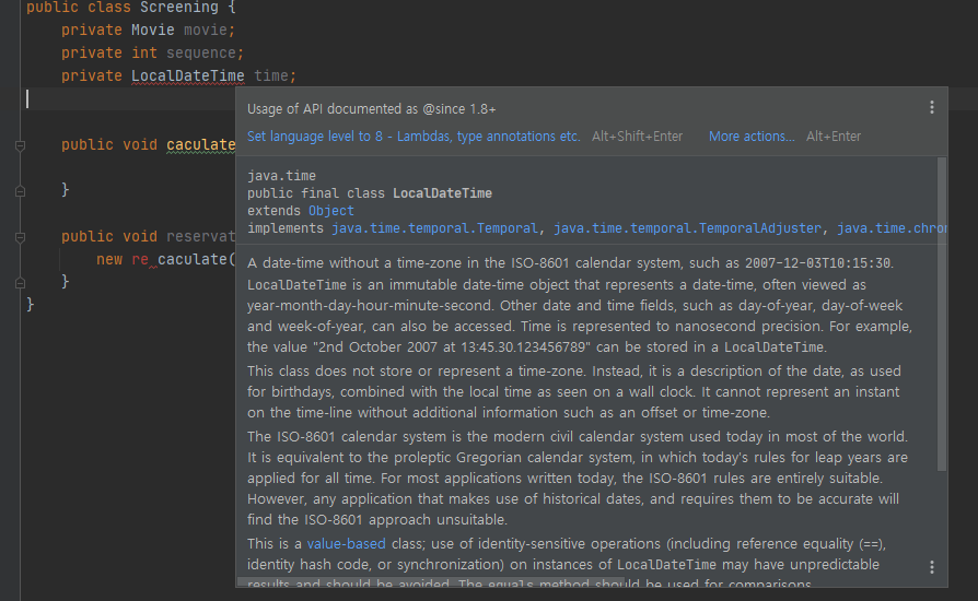 LocalDateTime클래스를 사용하려니 오류가 발생했습니다.