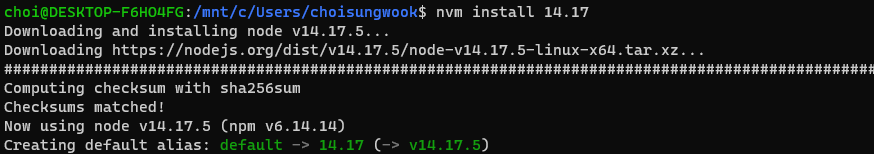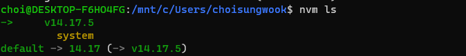 먼저 nvm이 관리하는 node버전을 검색합니다. [그림1]에서 설치한 14.17버전이 보입니다.