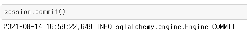 session.commit함수를 사용하면 session에 저장된 ORM이 데이터베이스에 반영됩니다.