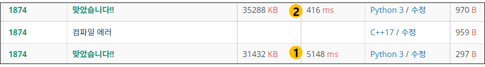 1번은 input()함수를 사용해서 실행한 경우고 2번은 sys.stdin.readline()함수를 사용해서 실행한 결과입니다.