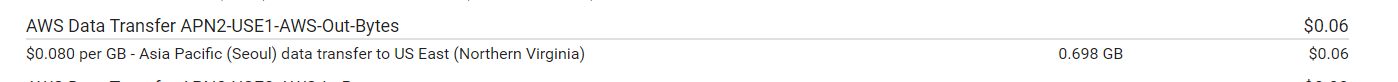 EC2에서 나가는 네트워크 트래픽에 대해서 돈을 지불해야 한다. 리전별로 가격이 다르며 서울은 1GB당 $0.1를 지불하는 것 같다.