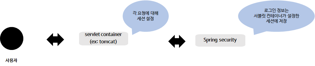 스프링 시큐리티는 로그인을 성공하면 인증정보를 세션에 저장합니다. 그리고 인증/인가가 필요할 때 세션에 저장된 인증정보를 확인합니다.