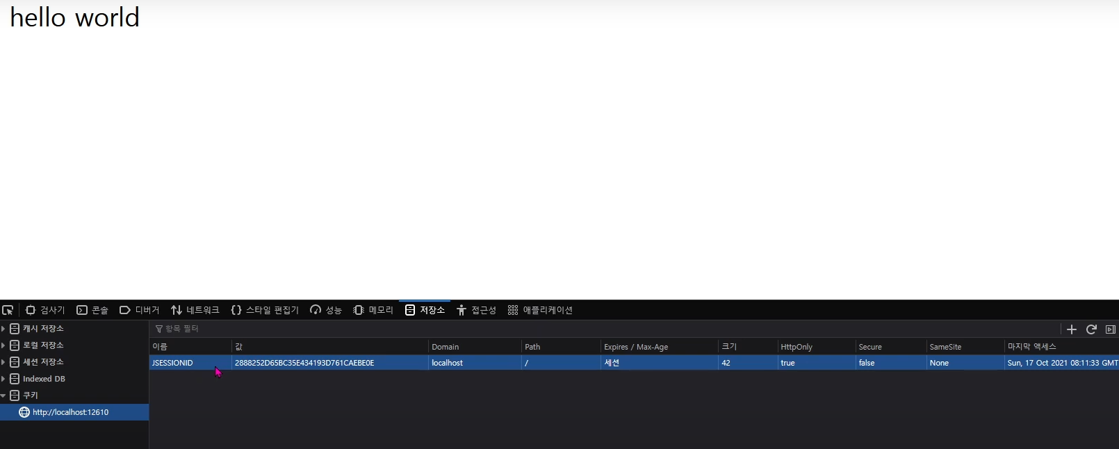 웹 브라우저 개발자 도구에서 JSESSIONID를 확인할 수 있습니다.