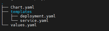 지금까지 templates디렉터리와 Chart.yaml파일을 작성했습니다. 구조는 아래와 같습니다.