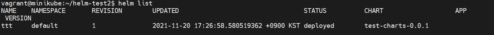 helm차트를 설치하면 release되었다고 표현합니다. release를 조회하는 방법은 helm list를 사용하면 됩니다.