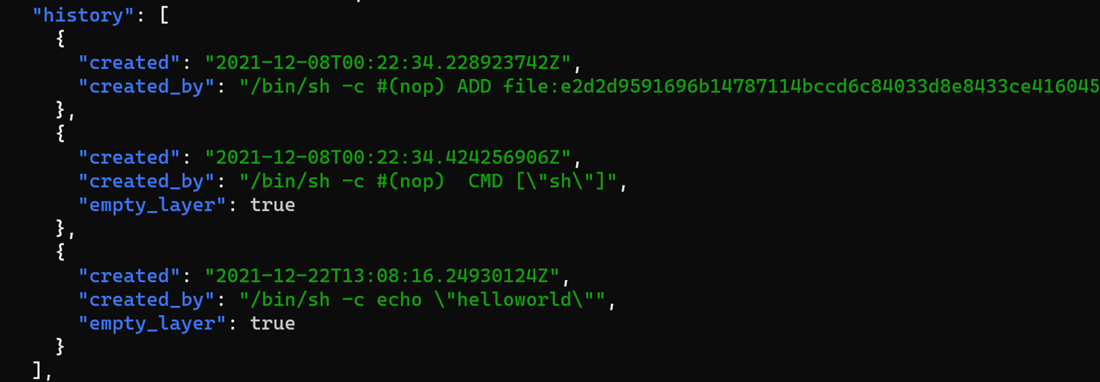 $ cd /var/lib/docker/image/overlay2/imagedb/content/sha256 $ cat sah256 | jq