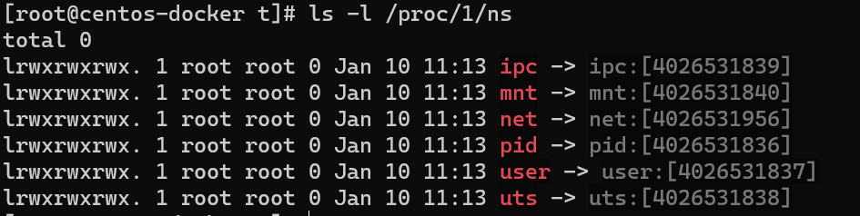네임스페이스를 확인하면 init프로세스 네임스페이스와 동일하는 것을 확인할 수 있습니다.