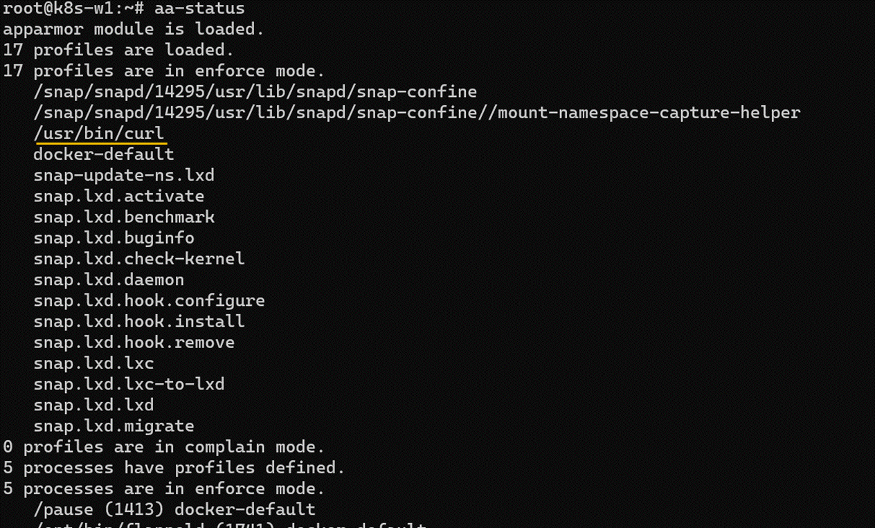- 모든 노드(controlplane 옵션)에 app armor을 실행 하고 있어야 한다.