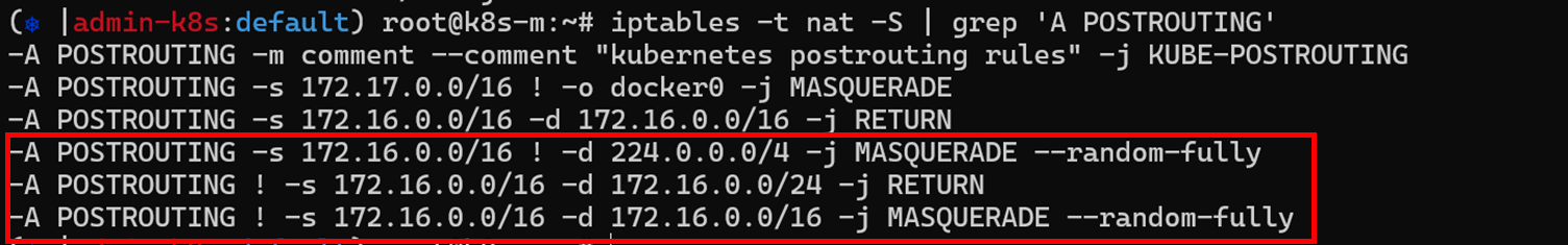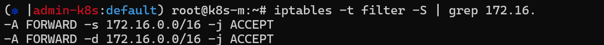 flannel은 가상브릿지를 이용한 내부통신(FORWARD)과 외부통신(POSTROUTING)을 위해 iptables이 설정되어 있습니다.
