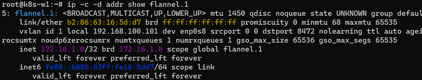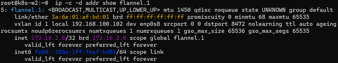 ip -c -d addr show flannel.1