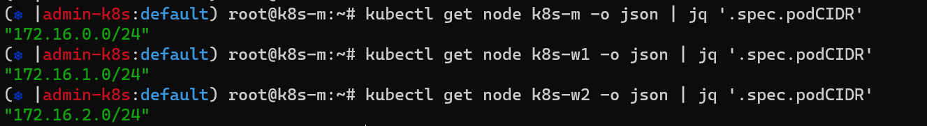 kubectl get node k8s-m -o json | jq '.spec.podCIDR'