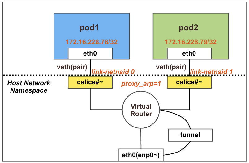 네트워크 엔지니어가 아니므로 정확한 정보가 아니지만.. 마치 nginx(리버시 프록시)처럼 calico가 arp 프로토콜을 이용하여 모든 내부통신을 calico를 거쳐가게 하는 것 같습니다.