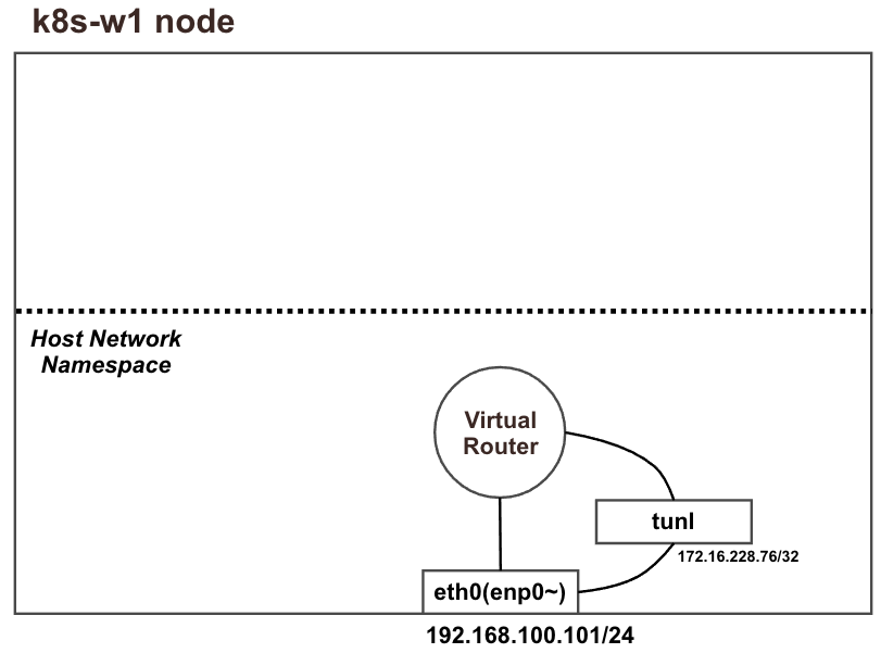 pod가 다른 노드의 pod와 통신하기 위해 tunl네트워크 인터페이스가 host(root 네트워크 네임스페이스)에 생성됩니다. tunl은 노드간 통신에 관여하지만 외부와 통신할때는 사용되지 않습니다.