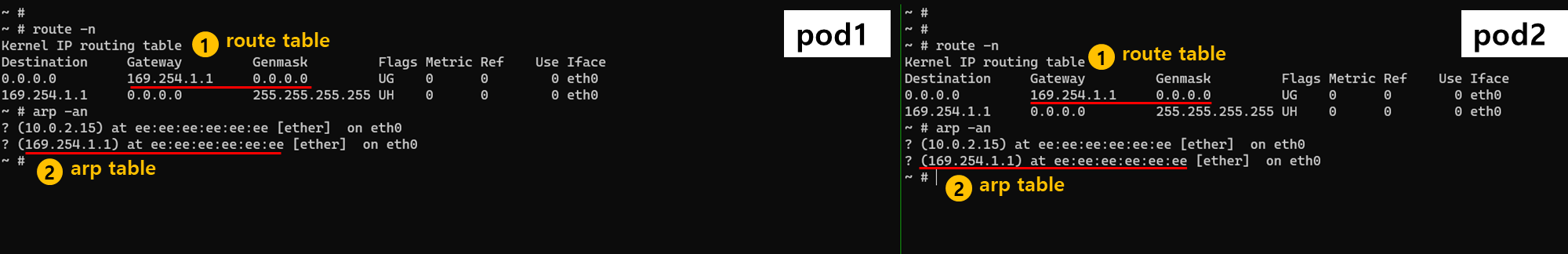 calico default gw는 169.254.1.1로 설정되어 있습니다. 169.254.1.1은 라우팅 테이블에 설정된 값이기도 합니다.