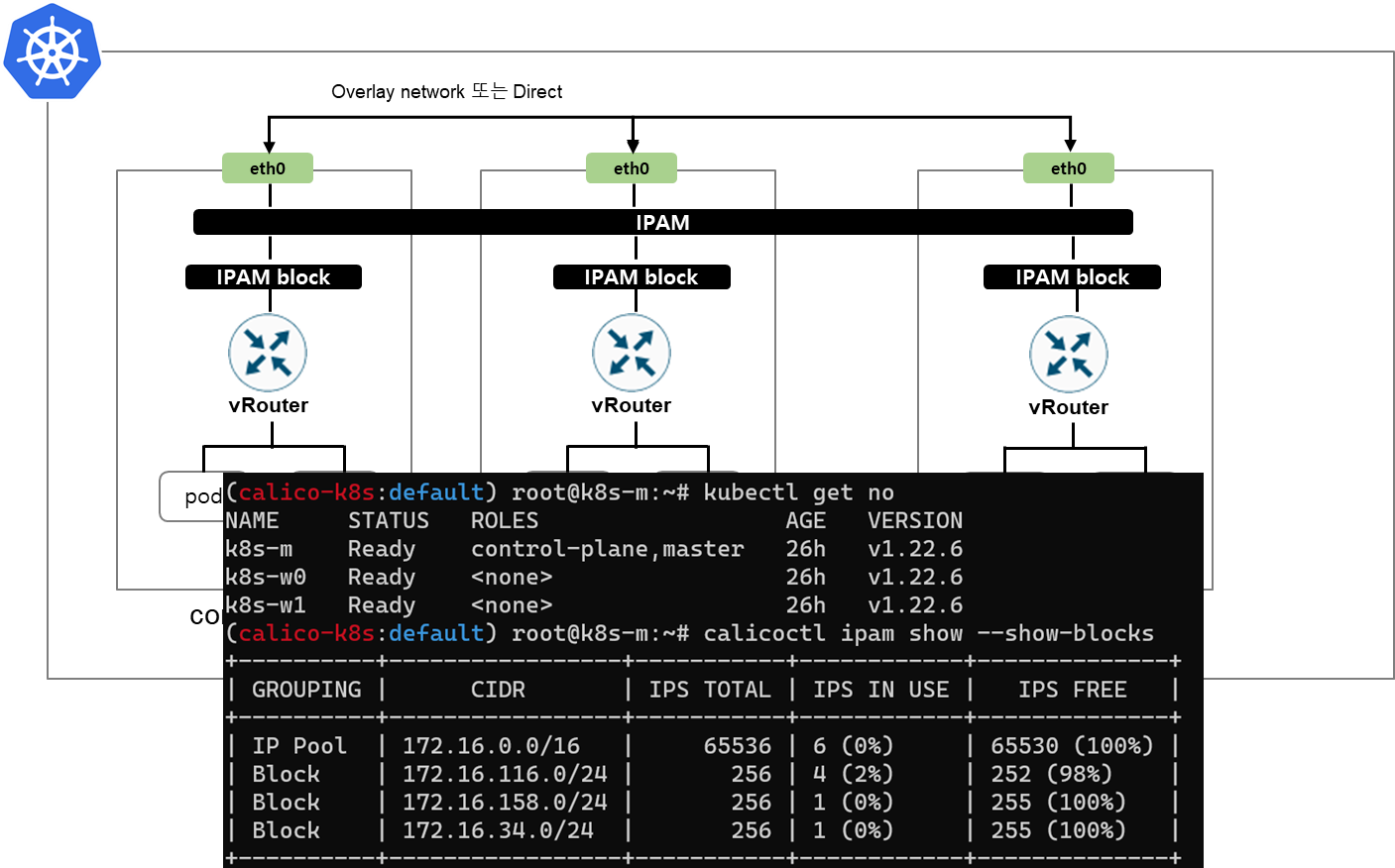 calico는 IP를 관리하기 위해 IPAM 컴퍼넌트가 있습니다.