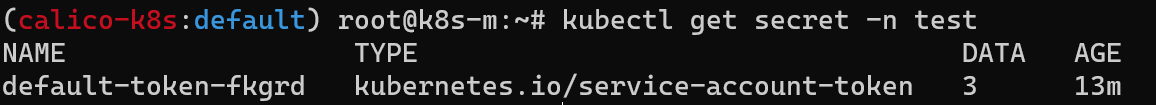 serviceaccount가 생성되면 serviceaccount 토큰이 secret으로 자동생성됩니다. default serviceaccount도 마찬가지로 토큰이 secret으로 저장됩니다.