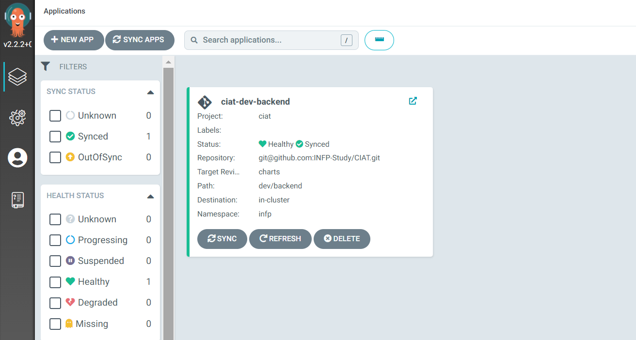 솔루션 중에 argocd 저의 의도에 적합했습니다. 마치 객제지향 캡슐화처럼 사용자는 쿠버네티스 접속정보를 모르지만 merge만 하면 쿠버네티스에 자동으로 배포되는 시나리오에 argocd가 적합했습니다. 관리자인 제가 argocd에 수동으로 한번 등록해주면 개발자는 merge만 신경쓰면되죠.