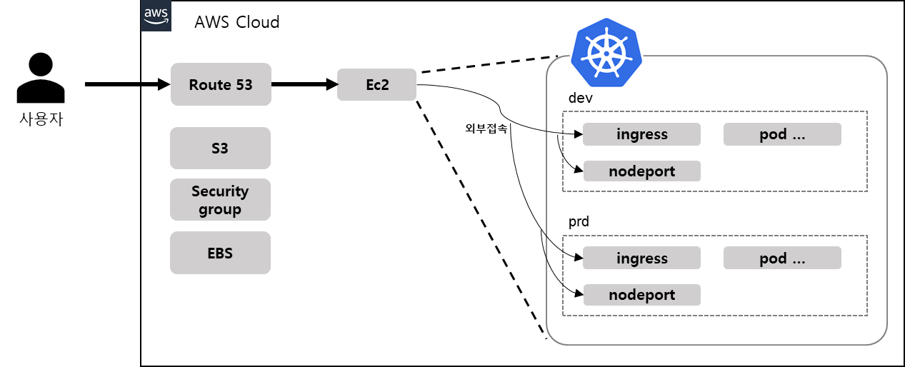 애플리케이션은 쿠버네티스로 동작하게 인프라를 구축했습니다. AWS를 개인 돈으로 구매해서 사용했고 미니쿠버네티스를 사용했습니다. 외부 접속은 쿠버네티스 ingress 또는 nodeport를 활용했습니다. ingress는 nginx ingress controller를 사용했습니다. 이 글에서는 자세히 설명하지 않지만 로그시스템을 위해 Loki와 메트릭 수집은 프로메테우스를 사용했습니다.