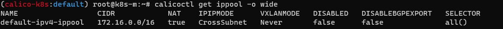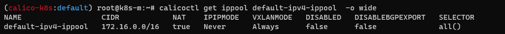 calicoctl get ippool default-ipv4-ippool -o wide