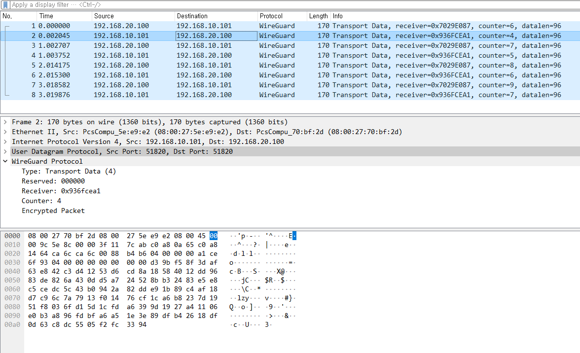 tcpdump -i enp0s8 udp port 51820 -w /tmp/calico-wireguard.pcap