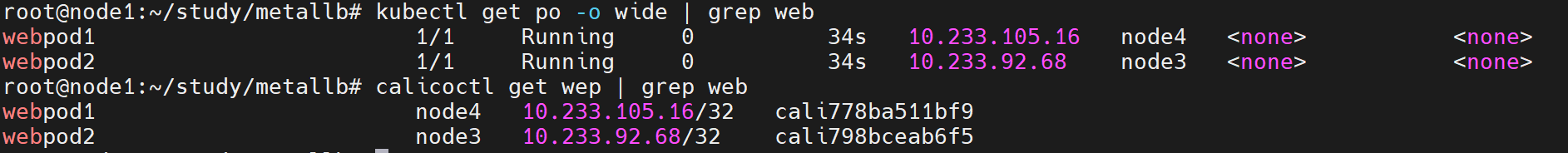 calico get wep로 podIP를 조회할 수 있습니다. 조회결과는 kubectl로 pod IP조회 결과와 일치합니다.