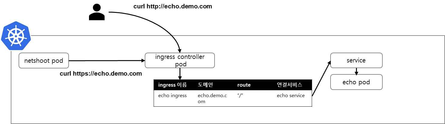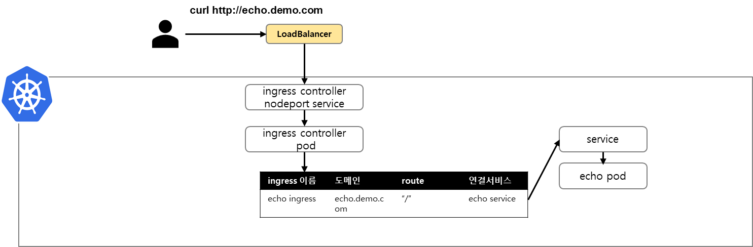 echoserver 도커 이미지로 파드, 서비스, 인그레스를 배포했습니다.