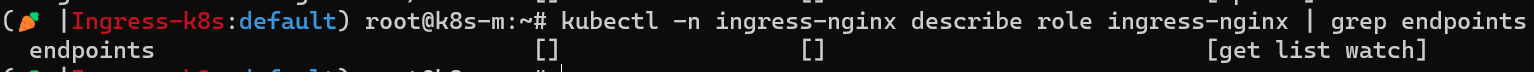 kubectl -n ingress-nginx describe role ingress-nginx | grep endpoints
