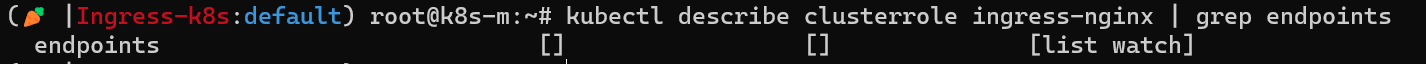 kubectl describe clusterrole ingress-nginx | grep endpoints