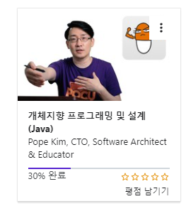 객제지향 설계는 udemy강의를 들었습니다. 아직 30%밖에 못들었는데 언제 다 듣지!. 객체지향 설계가 궁금하신분은 이 강의 추천드립니다. 언어는 JAVA지만 언어상관없이 매우 좋은 강의입니다.