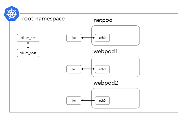 파드가 생성되면 lxc인터페이스가 생성되어 root네임스페이스와 연결됩니다.