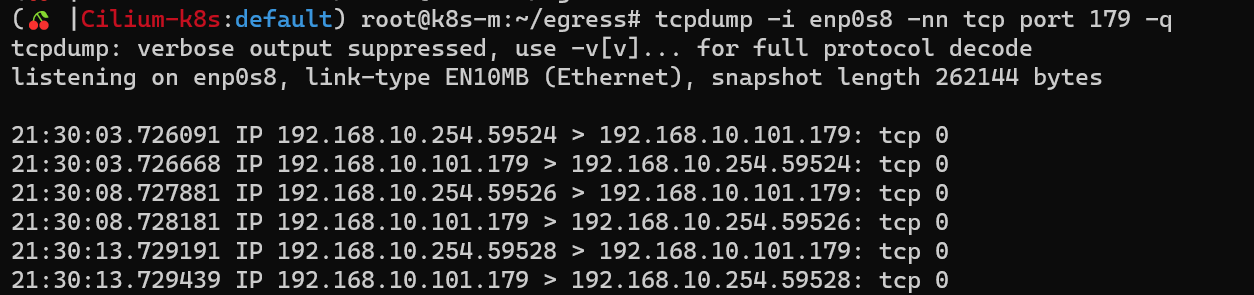tcpdump -i enp0s8 -nn tcp port 179 -q