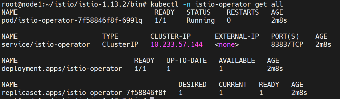 istio-operator라는 namespace가 생성되고 pod, service가 배포됩니다.