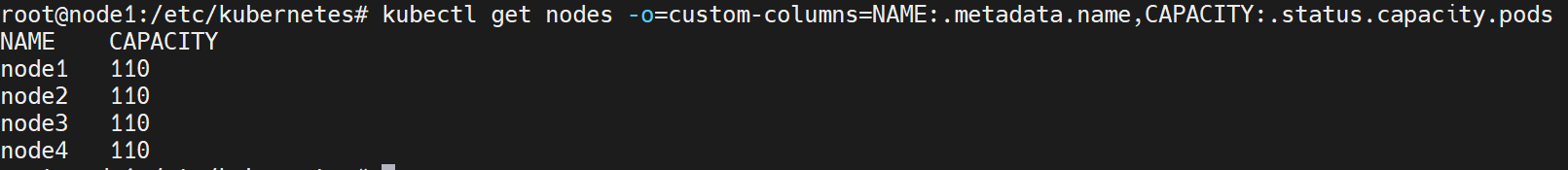 kubectl get nodes -o=custom-columns=NAME:.metadata.name,CAPACITY:.status.capacity.pods