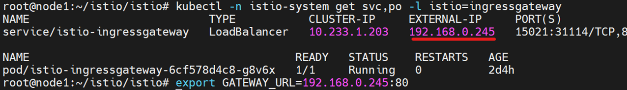 kubectl -n istio-system get svc,po -l istio=ingressgateway