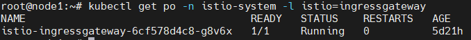 kubectl get po -n istio-system -l istio=ingressgateway