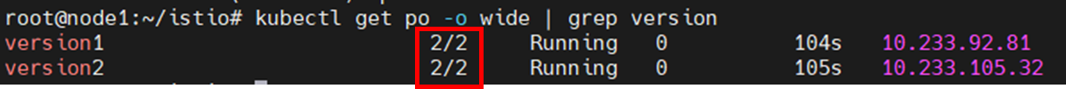 envoy proxy injectino이 잘 되었는지 컨테이너 갯수를 확인합니다.