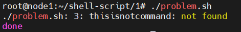 아래 결과처럼 에러가 발생했지만 echo "done"이 실행되었습니다.