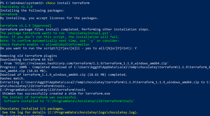 윈도우에 테라폼 설치는 chocolatey로 할 수 있습니다. chocolatey설치 방법은 이전글(https://malwareanalysis.tistory.com/323)을 참고하시길 바랍니다.