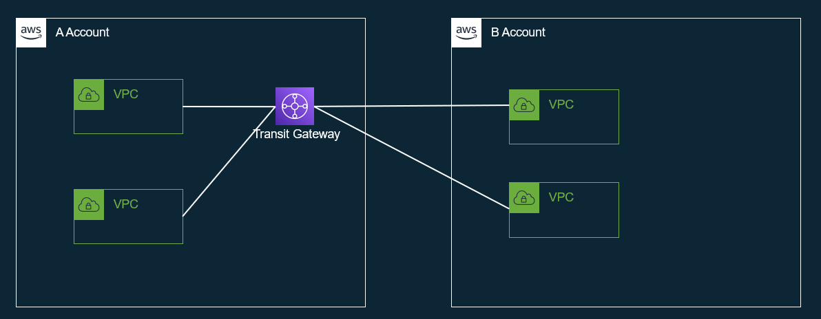 transit gateway는 Resource Access Manager(RAM)을 이용하여 다른 AWS계정 네트워크를 연결할 수 있습니다.