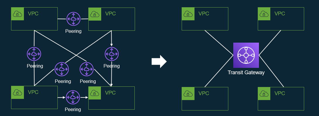 라우터로 네트워크 대역을 연결하는 것처럼, transit gateway는 VPC를 연결합니다.