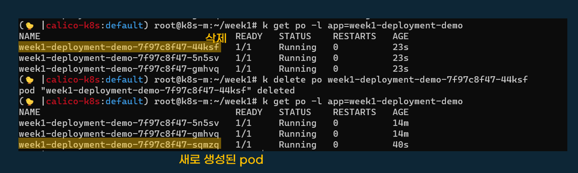 replicaset은 파드가 삭제되면 새로운 이름으로 파드가 생성됩니다.