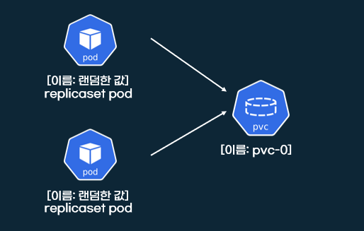 replicaset는 파드수가 증가하면 모든 파드가 동일한 pvc를 바라봅니다.