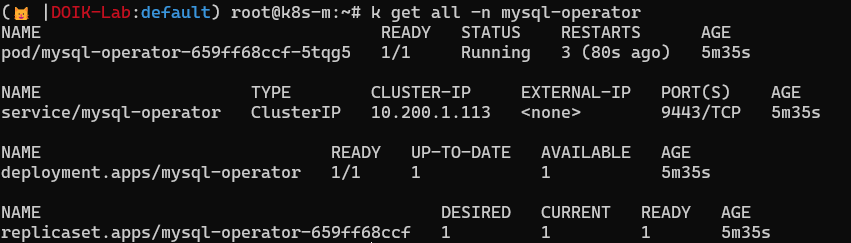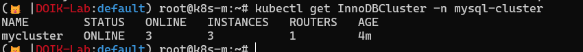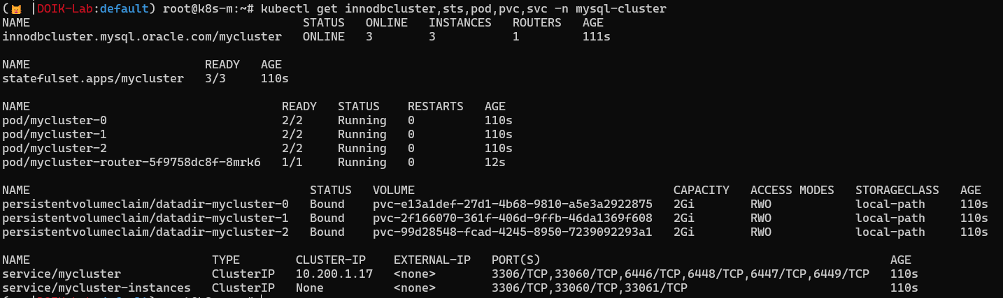 kubectl get innodbcluster,sts,pod,pvc,svc -n mysql-cluster