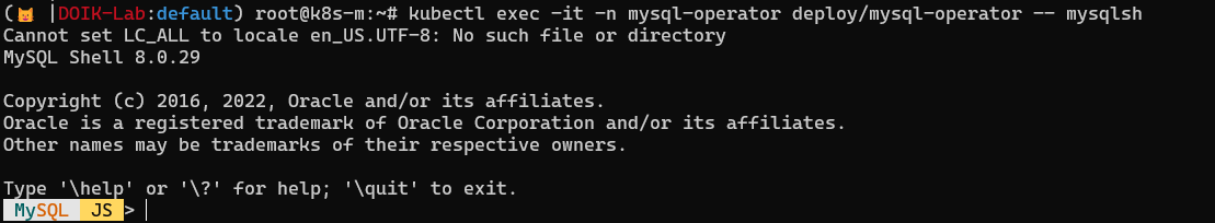 kubectl exec -it -n mysql-operator deploy/mysql-operator -- mysqlsh