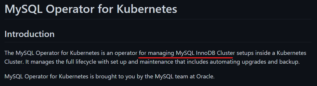 - mysql operator github: https://github.com/mysql/mysql-operator
